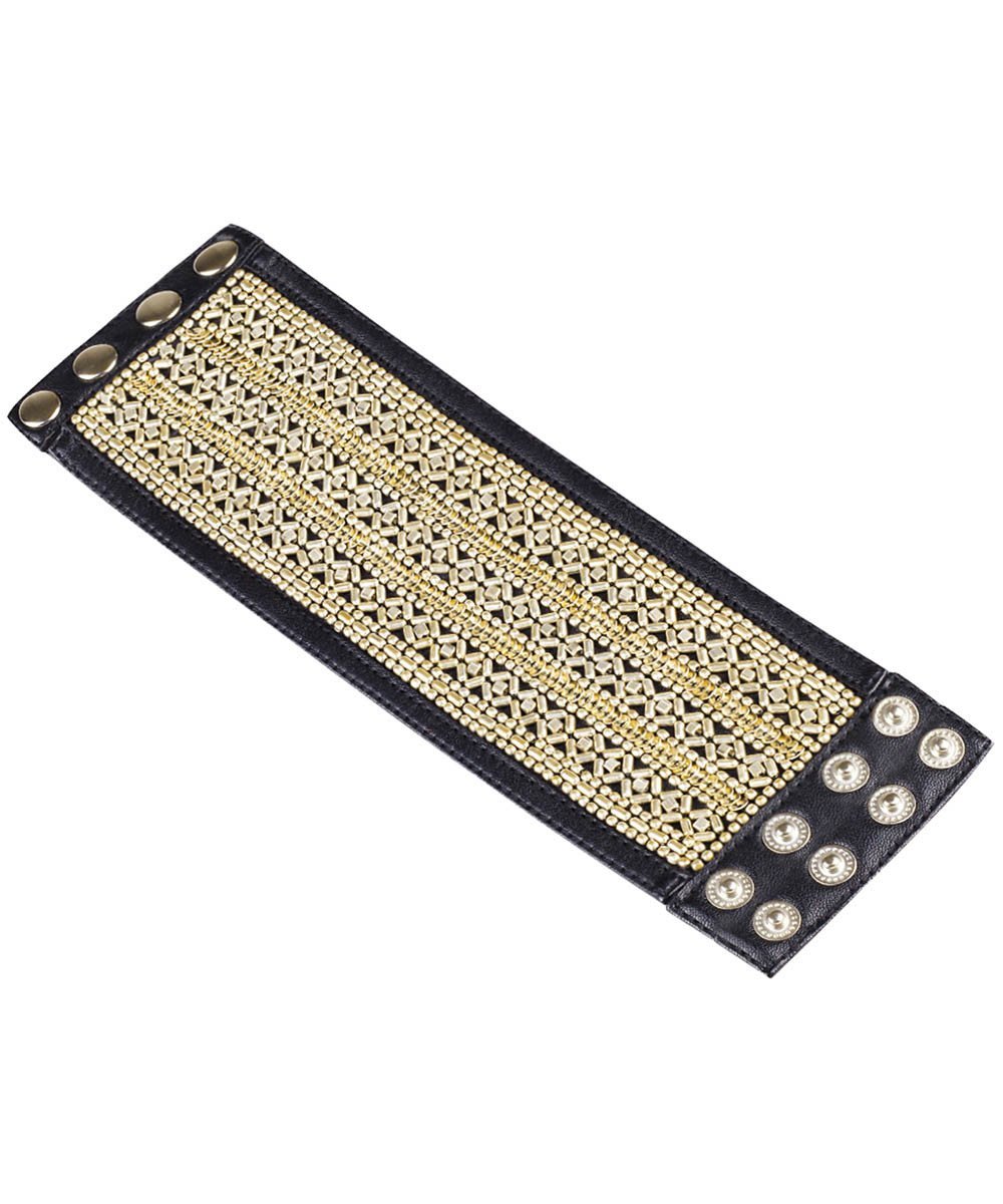 • Metallic Embroidered Wide Gothic Faux Leather Bracelet