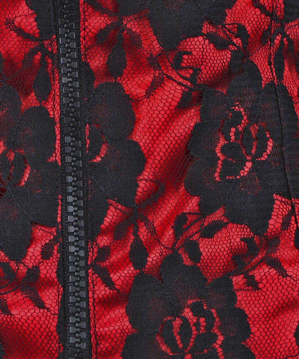• Gothic Corset Style Top in Polyester Satin with Nylon Lace Fabric Overlay