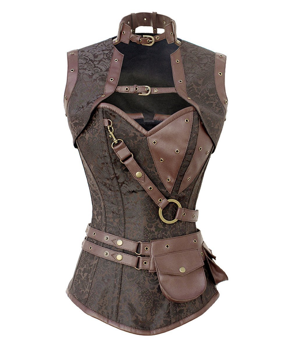 The Alexa Steampunk Corset is sincerely built to last as it offers 12 spiral steel bones, 4 flat steel bones, and other great components that help to maintain the integrity of the piece meanwhile giving you a comfortable wearing experience. The brilliant brown brocade and faux leather detailing incorporates all of the best features of steampunk fashion. The back of the corset adds an additional feminine appeal as the trimming accentuates all of your best feminine features. With the help of the side zipper opening, you won’t have to worry about readjusting the laces on the piece with consistent wear.