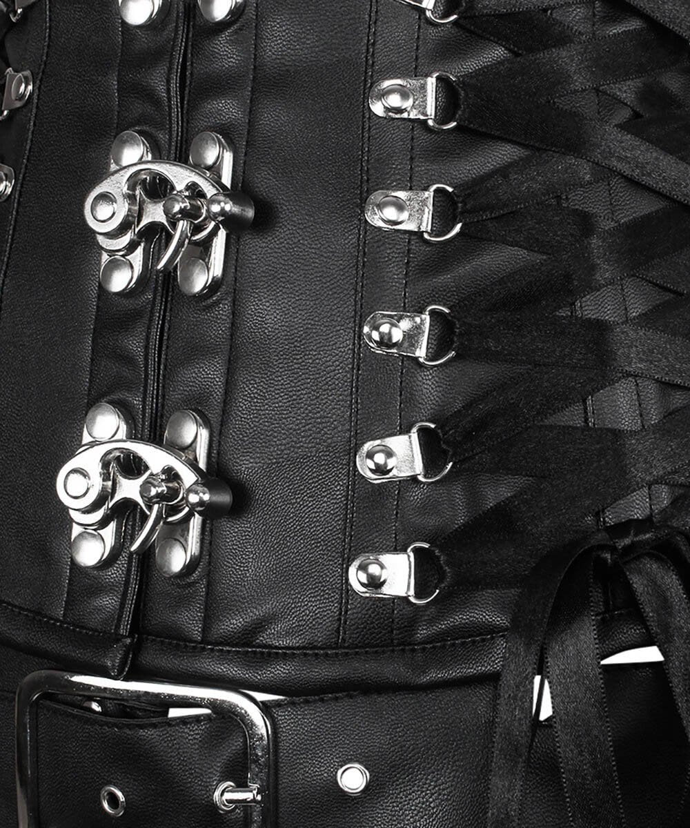 • Spiral Boned Steampunk Overbust Corset with Side Pocket Belt