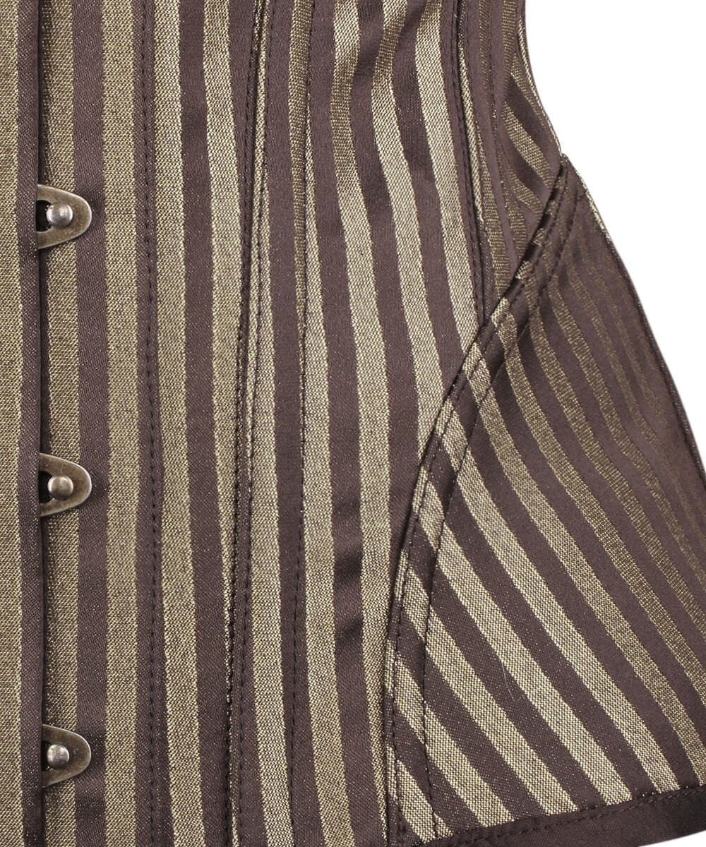 If you love all things steampunk, then you’re definitely going to want to learn more about this gorgeous, intensely aesthetically-pleasing steampunk corset. The stripes are a particularly inspired touch to this overbust corset, and you will find several other design elements to the corset that lend a great deal to why these corsets are so perfect for steampunk fans. This brocade corset features a metal busk front opening, and it also has the advantage of being incredibly comfortable. This includes the essential perk of having corsets that are not only stylish, but also easy to put on and take off.