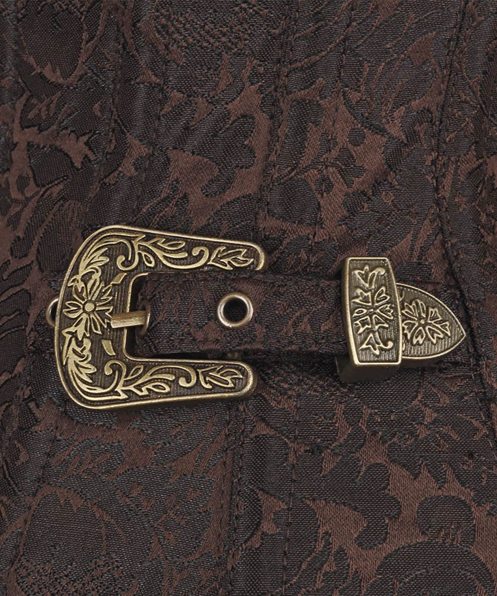 • Authentic Steel Boned Brown Brocade Underbust Corset with Buckle at Side