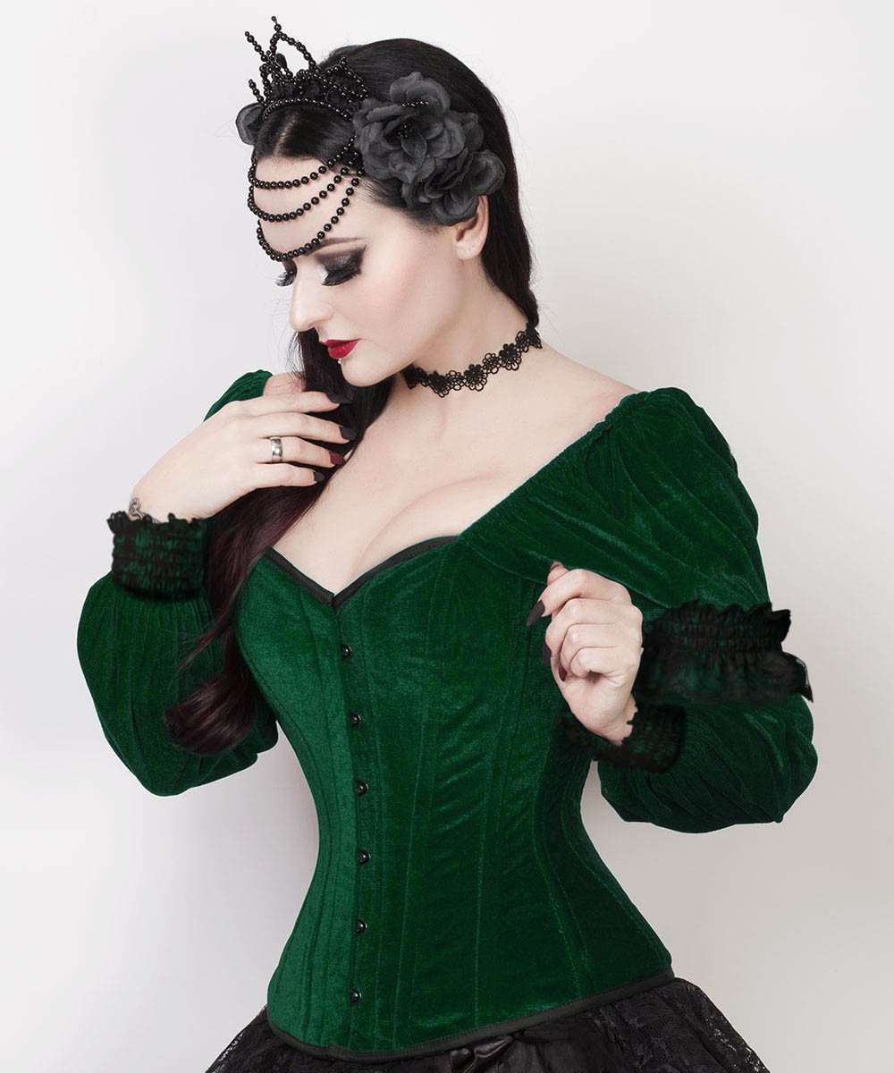 Fima Gothic Overbust Green Corset with Attached Sleeve