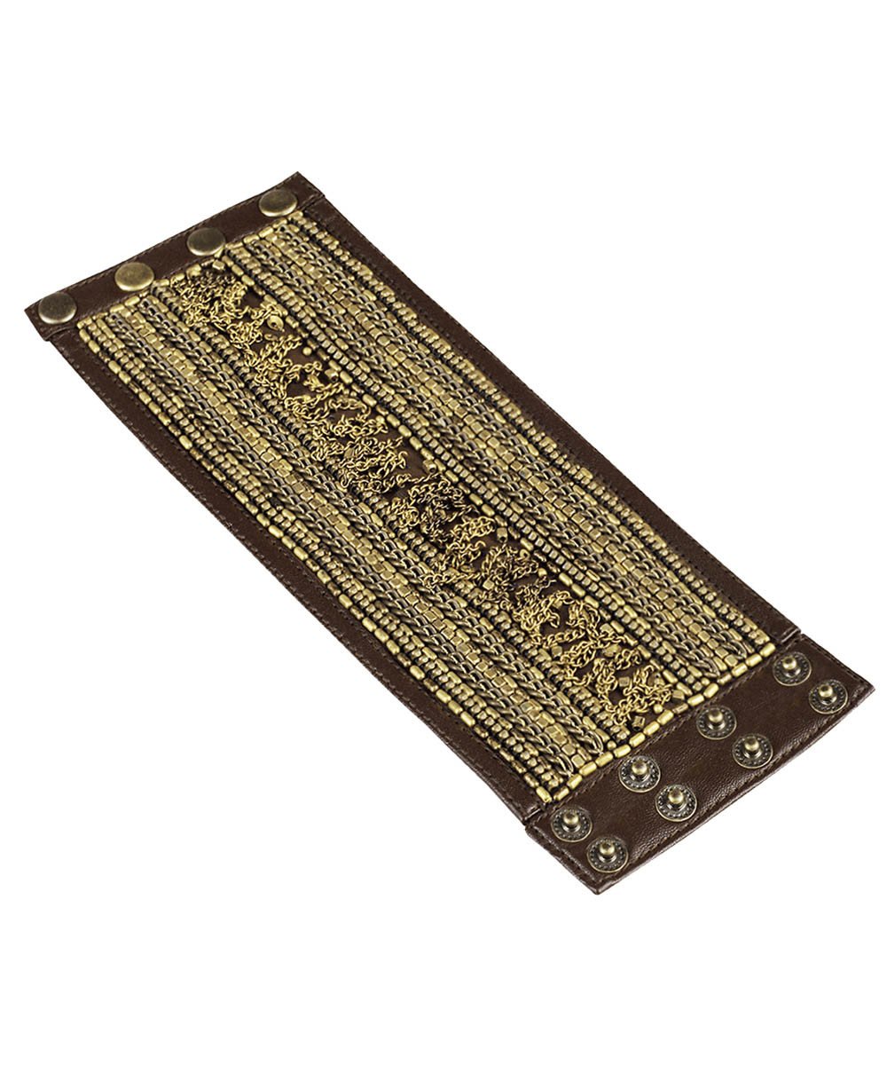 • Metallic Embroidered Wide Steampunk Faux Leather Bracelet