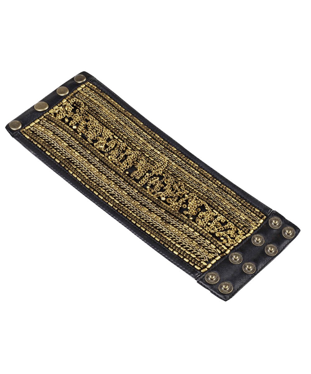 • Metallic Embroidered Wide Steampunk Faux Leather Bracelet